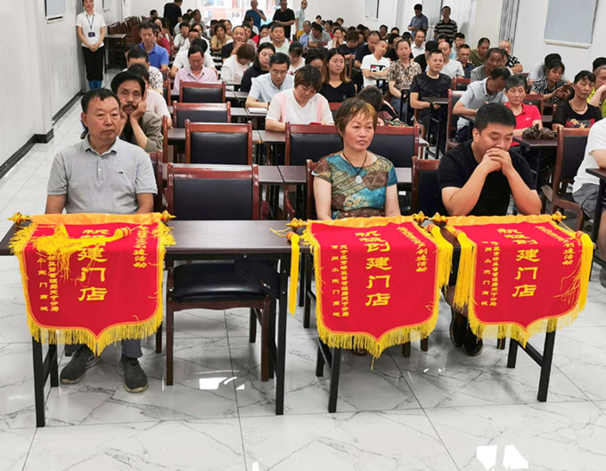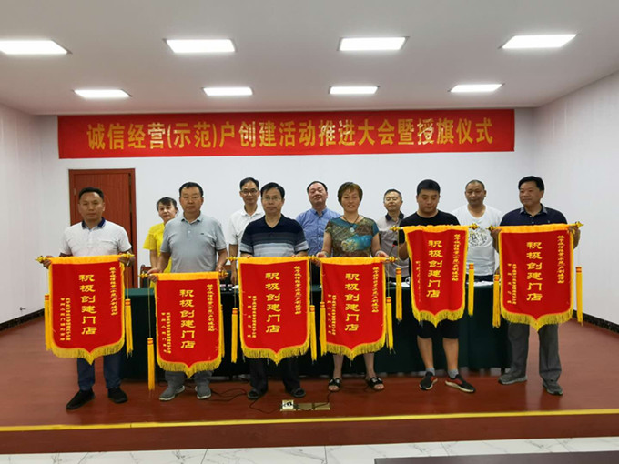 常州食品有限公司總經(jīng)理助理馮雪娟宣讀對2020年上半年誠信經(jīng)營(示范)戶創(chuàng)建門店進(jìn)行表彰的決定。并授予 “誠信經(jīng)營(示范)戶積極創(chuàng)建門店”流動紅旗: